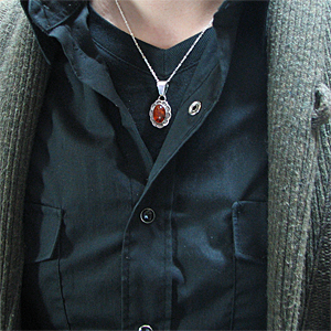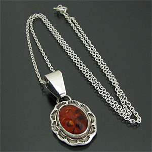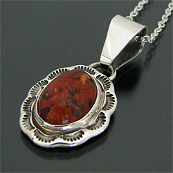 ナバホ族 アンバー スタンプワーク オーバル ネックレス [RNN-0099]