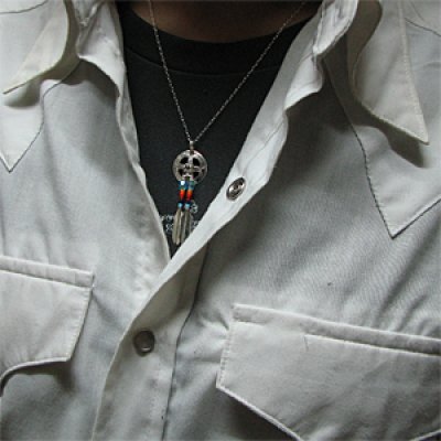 部族 NAVAJO/ナバホ族 制作者 unknown ホールマーク(刻印) なし 素材 ビーズ スターリングシルバー サイズ表 商品説明 ◎全長:48mm ◎縦幅:約43mm ◎横幅:約16mm ◎厚み:約4mm〜約0.5mm ◎チェーンの長さ:約45cm ◎重量:約2g(チェーン含まず) NAVAJO/ナバホ族のアーティストがビーズを用いて制作したメディスンホイールモチーフのネックレスです。 ネイティブアメリカンの人々に伝わる十字と輪っかで構成されたマーク 4つの方角、4つの季節や色、人種など他にも様々な意味を象徴するシンボル輪っかは、すべての物と自分とはつながっていると言う意味の『円』を示しています。 部族間で多少の差もありNavajo(ナバホ)族の間では 北=赤 東=黄色 南=白 西=黒を表し、Hopi(ホピ)族とZuni(ズニ)族の間では 北=黄色 東=白 南=赤 西=黒を表しています。 大切な方へのプレゼント・・・ ギフトラッピングも承っております。 ぜひご活用くださいませ♪ 撮影時の照明等の影響やPCディスプレイの特性の差などで、実物とは色合いが異なって見える場合がありますので、予めご了承下さいますようお願い致します。