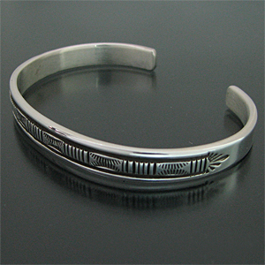 ナバホ族 Bruce Morgan スタンプワーク シルバー バングル [RNB-0073]