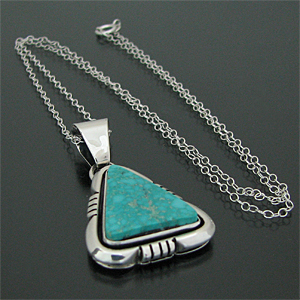 ナバホ族 Lonnie Willie ターコイズマウンテン トライアングル ネックレス [RNN-106]