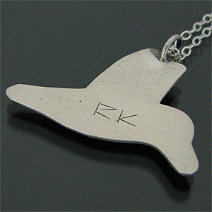 部族 HOPI/ホピ族 制作者 Raymond Kyasyousie レイモンド・キャセヨウス ホールマーク(刻印) RK 素材 スターリングシルバー サイズ表 商品説明 ◎全長:22mm ◎縦幅:約17mm ◎横幅:約25mm ◎厚み:約1.5mm ◎チェーンの長さ:約45cm ◎重量:約2g(チェーン含まず) HOPI/ホピ族の人気アーティスト Raymond Kyasyousie/レイモンド・キャセヨウスが制作したネックレスです。 オーバーレイ技法によってハミングバード(ハチドリ)がデザインされており、艶消しの落ち着いた雰囲気に仕上がっています。 2枚のシルバー・プレートを重ね、上のシートにデザインを描いてジュエリー用ののこぎりで切り抜き、下のシートに刻み目(テクスチャー)と呼ばれる模様を彫り、そして酸化させることで模様が黒く浮き上がるように仕上げられているオーバーレイで制作されています。 ハチドリはハチドリ科に属する鳥の総称で、鳥類の中で最も体が小さく、シアワセを運ぶ鳥とされています。 「ブンブン」 とハチと同様の羽音を立てるため、ハチドリ(蜂鳥)と名付けられ、ハミングバードとも云われています。 Raymond Kyasyousieは1975年からシルバーワークを開始したホピ族のアーティストで、 2007年のHOPIショーで、グランプリを受賞した腕前を持つアーティストです。 大切な方へのプレゼント・・・ ギフトラッピングも承っております。 ぜひご活用くださいませ♪ 撮影時の照明等の影響やPCディスプレイの特性の差などで、実物とは色合いが異なって見える場合がありますので、予めご了承下さいますようお願い致します。