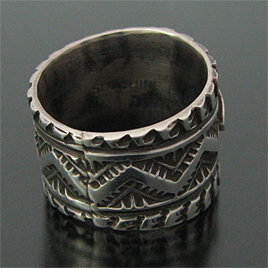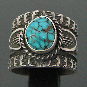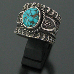 ナバホ族 Sunshine Reeves ターコイズマウンテン スタンプワーク リング 17.5号