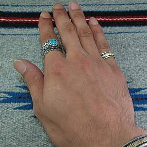 ナバホ族 Sunshine Reeves ターコイズマウンテン スタンプワーク リング 17.5号 [R1-114]