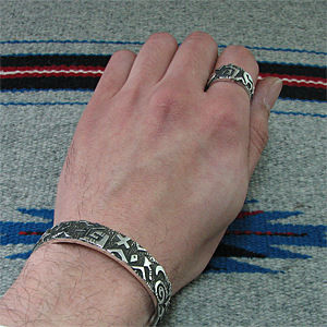 ナバホ族 Kee Yazzie オーバーレイ ペトログリフ バングル [R1-006]