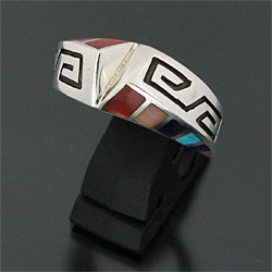 ナバホ族 Lonn Packer マルチカラー オーバーレイ インレイ リング 18.5号 [R1-107]