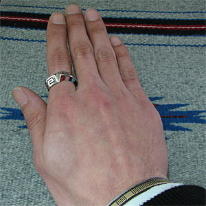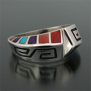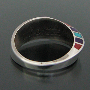ナバホ族 Lonn Packer マルチカラー オーバーレイ インレイ リング 18.5号