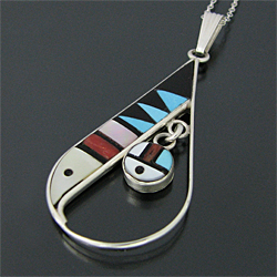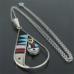 ズニ族 Strallie&Sheryl Edaakie マルチストーン インレイ サンフェイス ネックレス [R3-058]