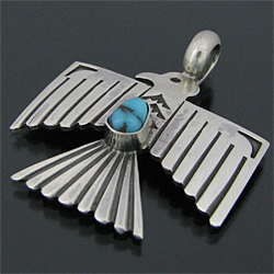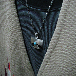 ナバホ族 Sunshine Reeves キングマン サンダーバード スタンプワーク ペンダント [R3-084]