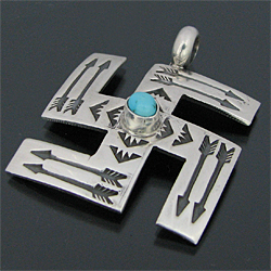 ナバホ族 Sunshine Reeves スワスティカ キングマン スタンプワーク ペンダント [R3-081]