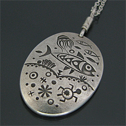 ナバホ族 Norbert Peshlakai スタンプワーク フィッシュ オーシャン ネックレス