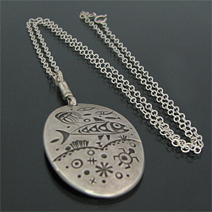 ナバホ族 Norbert Peshlakai スタンプワーク フィッシュ オーシャン ネックレス [R1-196]