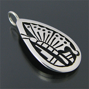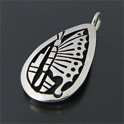 ホピ族 Sparky Masawytewa バタフライ オーバーレイ ティアドロップ ペンダント [R3-042]