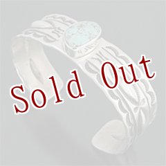 ナバホ族 Lyndon Tsosie キングマン インゴットシルバー バングル [R4-082]