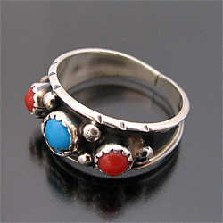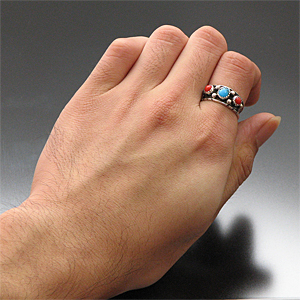 ナバホ族 ターコイズ コーラル コンビ リング 16.5号