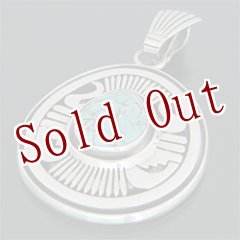 NAVAJO/ナバホ族のアーティスト Leonard Nez/レオナルド・ネズにナンバーエイト(ターコイズ)を渡して制作依頼をしたペンダントです。
