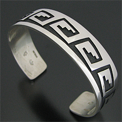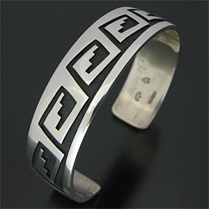 数々の賞を受賞し、最も名誉ある【Arizona Living Treasure/アリゾナ州の無形文化財、日本でいう人間国宝】の称号をもつHOPI/ホピ族のベテラン有名アーティスト Griselda Saufkie/グリセルダー・スフキーがデザインしたバングルです。