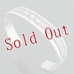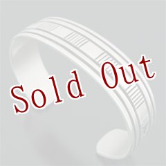 緻密で規則的なナバホ族の伝統的デザインが施されており、シンプルに着けたい方など、インディアンジュエリーをさりげなくアピールすることが出来る作品です。