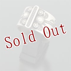 艶消しのマットな質感に、彼の作品の特徴でもあるワイヤーワークを取り入れ、ハートのスタンプをアップリケで仕上げて頂きました。シルバーの燻加減は絶妙で、技術の高さを表しています。