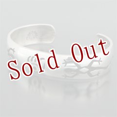 経年変化と共にホピジュエリー特有の味わい深いアイテムをお楽しみ下さい。2枚のシルバー・プレートを重ね、上のシートにデザインを描いてジュエリー用ののこぎりで切り抜き、下のシートに刻み目(テクスチャー)と呼ばれる模様を彫り、そして酸化させることで模様が黒く浮き上がるように仕上げられているオーバーレイで制作されています。