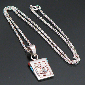 ナバホ族 ココペリモチーフ インレイ ターコイズ コーラル ネックレス [NN-0012]