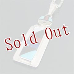 ズニ族 Strallie&Sheryl Edaakie マルチカラーン インレイ サンフェイス ネックレス [R8-008]