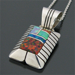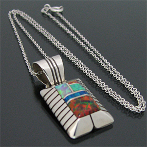 ナバホ族 Chester Benally チャンネルインレイ オパールマルチカラー ネックレス