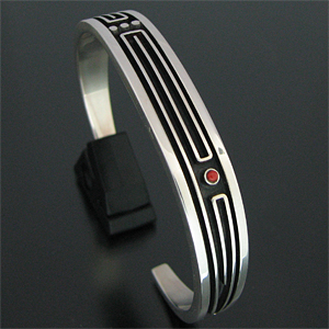 ナバホ族 Albert Nells オーバーレイ コーラル バングル [R9-017]