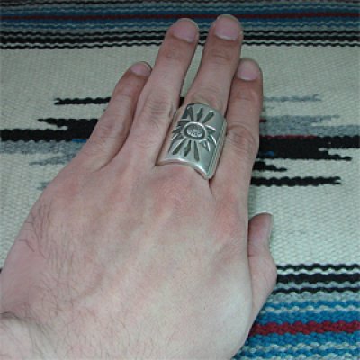 ナバホ族 Jennifer Curtis シールド スタンプ リング 19号