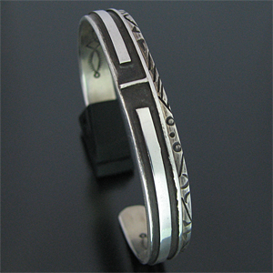 現代的デザインを手掛ける作家ですが、手作りの良さを感じるバングルです。バックスタンプが入っており、作家の拘りが垣間見える作品に仕上がっています。