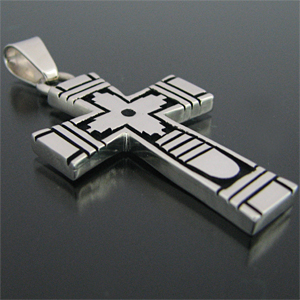 ナバホ族 Steven J. Begay オーバーレイ クロス ペンダント
