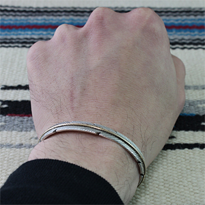 ◎縦幅:約7mm◎内周:約165mm◎開口部:約26mm◎厚み:約2mm〜約1mm ◎重量:約17g◎素材:12KGF(12金張り)・スターリングシルバー