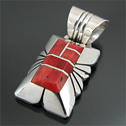ナバホ族 Chester Benally コーラル チャンネルインレイ ペンダントトップ