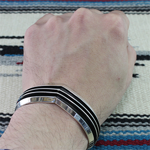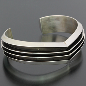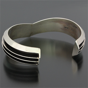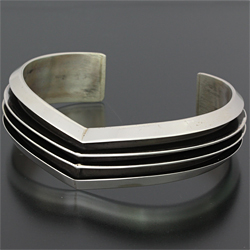 NAVAJO/ナバホ族のアーティスト Tom Hawkが制作したV字型の2ラインバングルです。