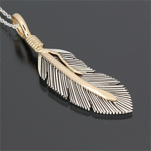 躍動感のあるフェザーデザインに、中心には12KGF(12金張り)が施されています。
