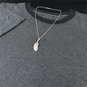 ◎全長:47mm◎縦幅:約37mm◎横幅:約12mm◎厚み:約2mm〜約0.5mm◎チェーンの長さ:約45cm◎重量:約4g◎素材:12KGF・スターリングシルバー