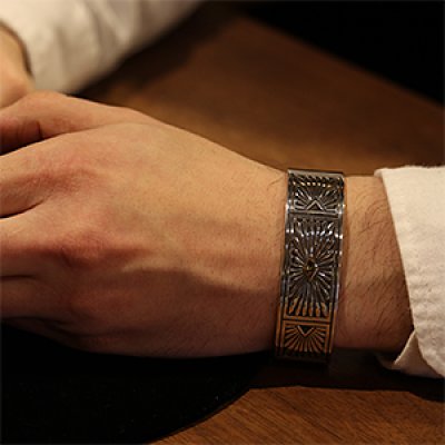 ナバホ族 Howard Nelson 14K サンバースト バングル [F06-177]