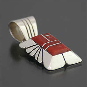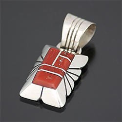 ナバホ族 Chester Benally チャンネルインレイ コーラル ペンダント M [R13-083]