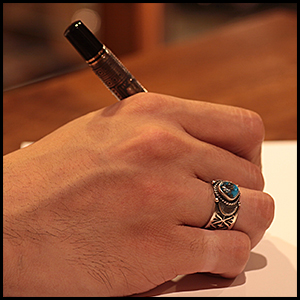 石はイサカピークで、落ち着いた光沢との相性が良く、全体のバランスがまとまっており、着けやすさも兼ね備えています。