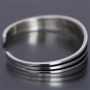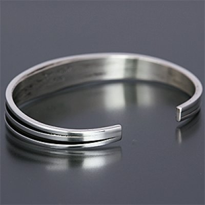◎縦幅:約10mm〜約5mm◎厚み:約2mm◎内周:約170mm◎開口部:約25mm◎重量:約17g◎素材:スターリングシルバー