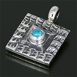 ナバホ族 Sunshine Reeves ターコイズ スクエア ペンダント [R22-020]