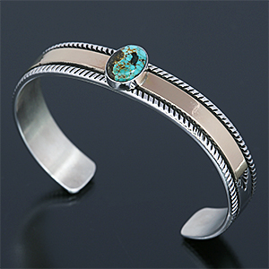 NAVAJO/ナバホ族のアーティスト Bruce Morgan/ブルース・モーガンに制作を依頼したバングルです。作家のスタイルはそのままでモレンシを渡してをセットして頂きました。14Kとシルバー、そして石の色合いがバランスよく混ざり合い作品に新鮮さを感じさせます。それぞれの素材の良さとスタイルをお楽しみください。