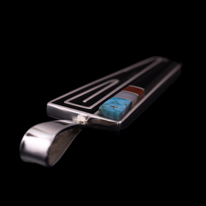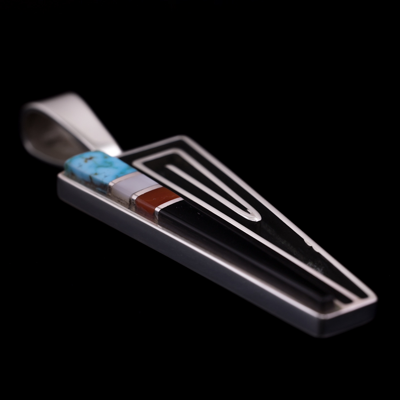 ナバホ族 Albert Nells Jet マルチカラー インレイ ペンダント