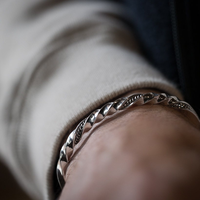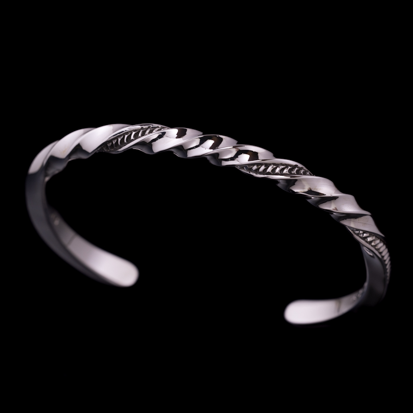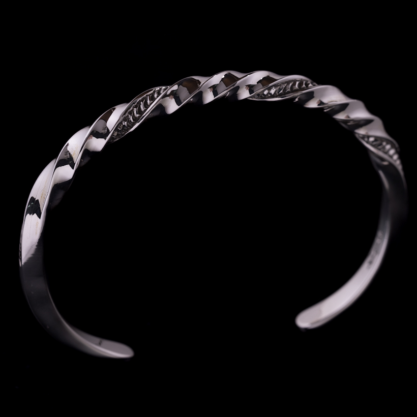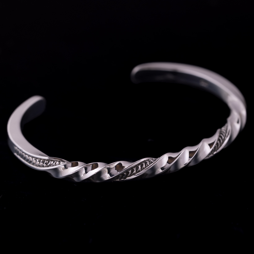 ナバホ族 Lyle Secatero #6スクエア ツイスト ウォーター バングル [LSB-002]