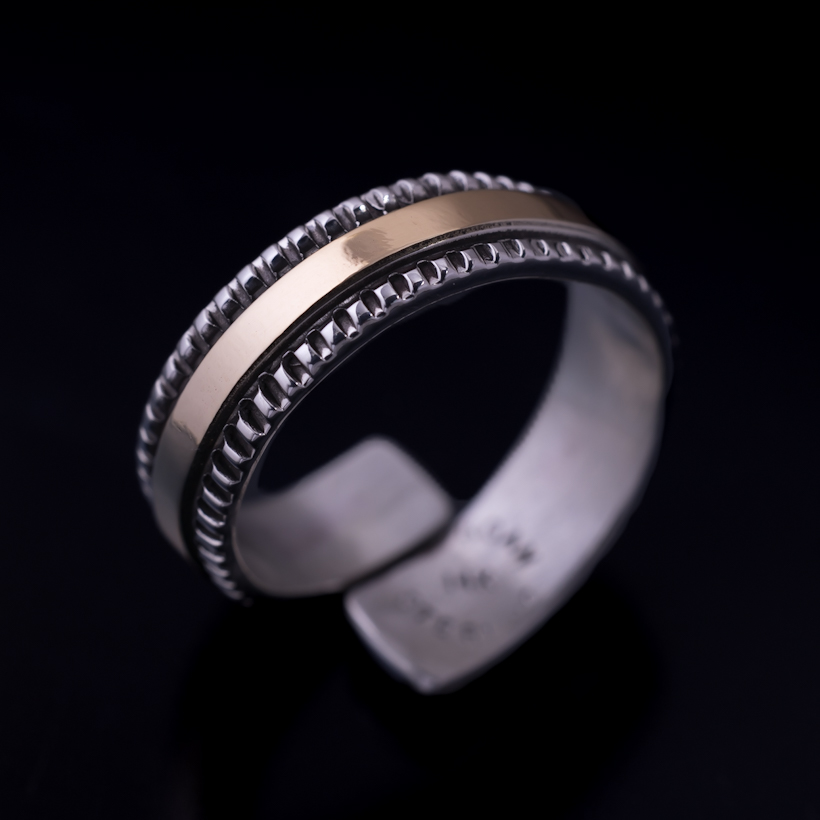 【RIVER MAIL企画】ナバホ族 Bruce Morgan 1/4 14K チゼル アジャスタブル リング [BMR-012]