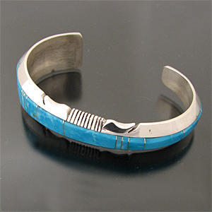 ナバホ族 Steve Francisco ターコイズ チャンネルインレイ バングル