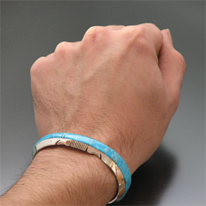 ナバホ族 Steve Francisco ターコイズ チャンネルインレイ バングル [NB-0030]