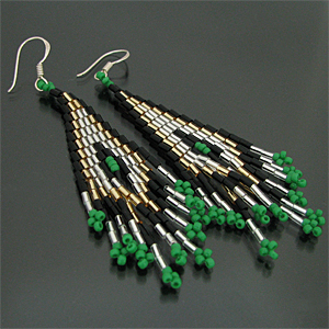 オリジナル ビーズ チマヨ柄 グリーン 小 ドロップタイプ/アメリカンタイプ ピアス
