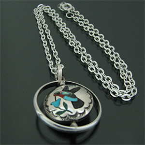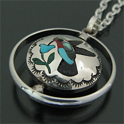 ズニ族 Quinton Quam サークル マルチストーン フラットインレイ ハチドリ カージナル リバーシブル ネックレス