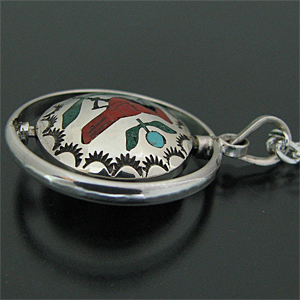 部族 ZUNI/ズニ族 制作者 Quinton Quam クゥイントン・クアム ホールマーク(刻印) なし 素材 ターコイズ・シェル・コーラル ジェット・マラカイト スターリングシルバー サイズ表 商品説明 ◎全長:35mm ◎縦幅:約26mm ◎横幅:約26mm ◎厚み:約8mm ◎チェーンの長さ:約45cm ◎重量:約7g(チェーン含まず) ZUNI/ズニ族の人気アーティスト Quinton Quam/クゥイントン・クアムが制作したリバーシブルのネックレスです! フラットインレイという技法を用いた作品で、ペンダントの表面は凹凸が無く平面的に仕上がっています。 幸福の鳥と呼ばれるハミングバードがモチーフになっており、花の蜜を吸う様子を忠実に写実した、とても美しい作品です。 もう片面は赤い鳥カージナル(コウカンチョウ)がデザインされています。 カージナルはメジャーリーグのセントルイス・カージナルス、NFLのアリゾナ・カージナルスのチーム名にも使用されています。 リバーシブルタイプとなっていますので、1度に2度楽しめる仕様となっております! とてもフェミニンで女性らしいフラットインレイの作品は、女性に人気のアイテムで、大切な方へのプレセントにも最適です。 サークル型の女性らしい華やかなデザインに魅了されます。 大切な方へのプレゼント・・・ ギフトラッピングも承っております。 ぜひご活用くださいませ♪ 撮影時の照明等の影響やPCディスプレイの特性の差などで、実物とは色合いが異なって見える場合がありますので、予めご了承下さいますようお願い致します。 (送料無料)
