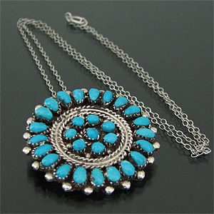 ナバホ族 ターコイズ クラスター ブローチ ネックレス [RNN-0100]